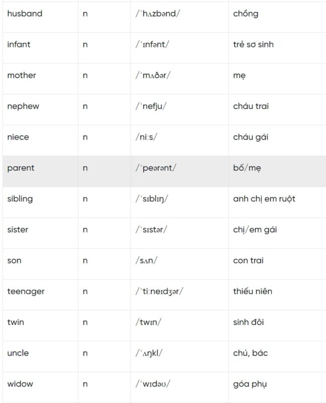 Từ vựng về gia đình, bạn bè, nghề nghiệp