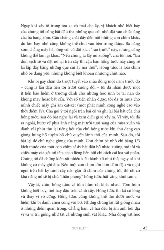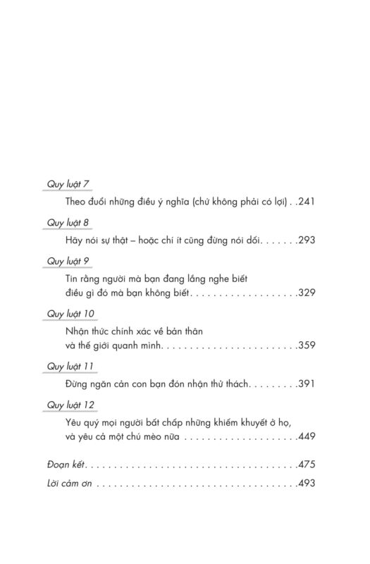 Mỗi quy luật trong sách đều đi kèm những ví dụ thực tiễn, những câu chuyện đời thường và các nghiên cứu tâm lý, giúp bạn nhận ra mối liên hệ giữa hành vi, quyết định và kết quả trong cuộc sống. Từ việc đứng thẳng, giữ trật tự trong gia đình, đến cách đối xử với bản thân và người khác, từng nguyên tắc đều hướng đến mục tiêu giúp bạn phát triển nhân cách, trách nhiệm và khả năng chịu đựng thử thách.