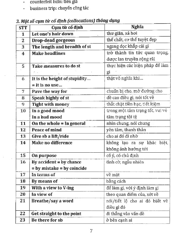 Minh họa ví dụ thực tế: mỗi collocation/idiom đều kèm ví dụ cụ thể, giúp người học hiểu nghĩa nhanh chóng.