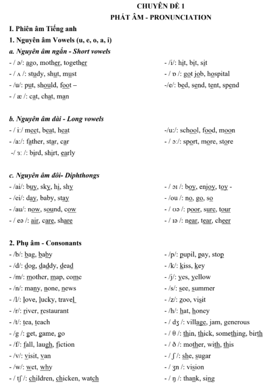 Nội dung trọng tâm trong 25 chuyên đề ngữ pháp tiếng anh tập 1