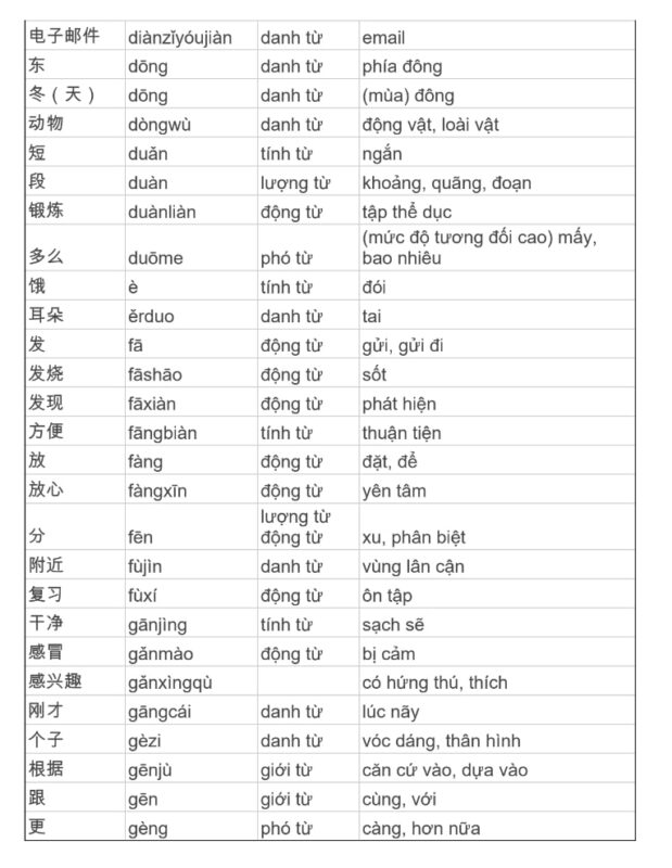 Điểm nổi bật của tài liệu này là mỗi từ đều kèm phiên âm, nghĩa tiếng Việt, ví dụ minh họa và cách dùng trong ngữ cảnh, giúp bạn không chỉ học thuộc lòng mà còn hiểu sâu, nhớ lâu. Với phương pháp học thông minh kết hợp hình ảnh và câu ví dụ, 600 Từ Vựng HSK 3 giúp bạn nâng cao vốn từ vựng nhanh chóng, củng cố kỹ năng nghe – nói – đọc – viết, đồng thời tự tin đạt điểm cao trong kỳ thi HSK.