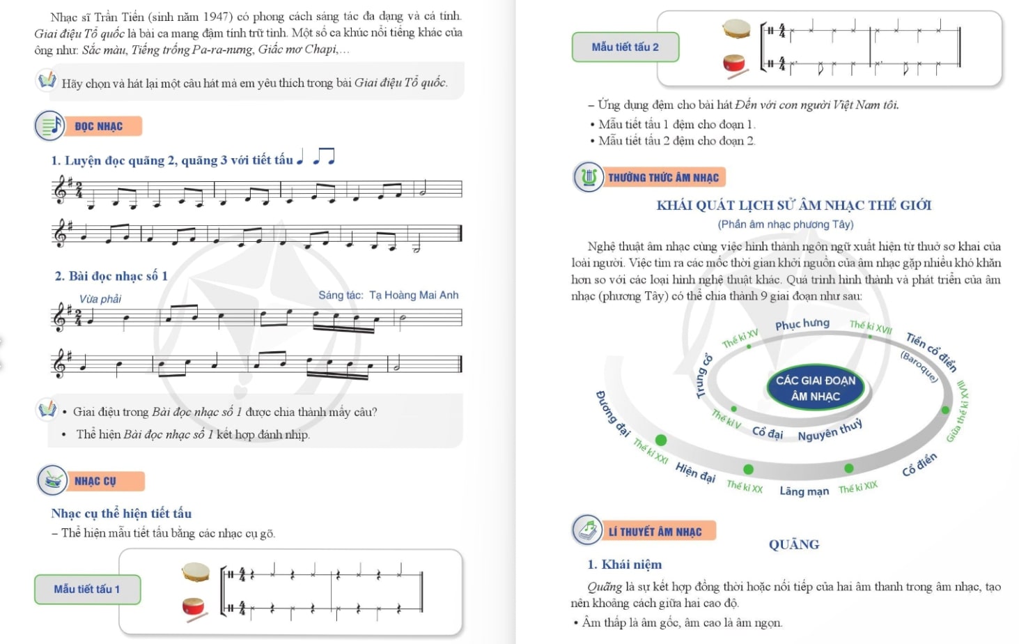 Ca hát – đọc nhạc – nghe nhạc – trình bày – cảm thụ đều được kết hợp trong chương trình.