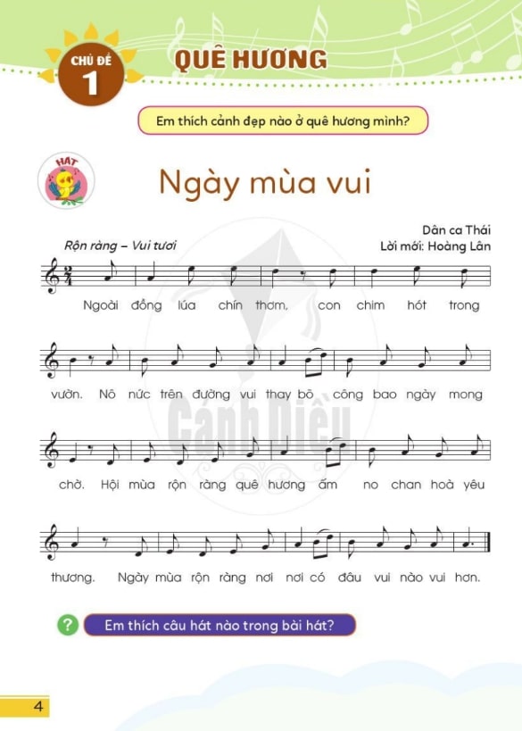 Nội dung học tập hấp dẫn trong Âm Nhạc 2 Cánh Diều