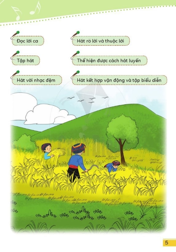 Sách tập trung vào việc phát triển song song các kỹ năng: nghe – hát – vận động – biểu diễn. Qua từng bài học, học sinh được rèn luyện khả năng cảm nhận giai điệu, nhận biết phách, nhịp và cao độ, đồng thời phát triển kỹ năng hát nhóm, biểu diễn cùng bạn bè. Đây là nền tảng quan trọng giúp trẻ yêu thích âm nhạc và tự tin biểu diễn.