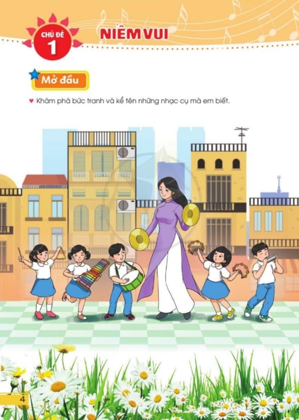 Bài học mở đầu: Tập trung vào việc nhận biết âm thanh, nhạc cụ và giai điệu cơ bản. Giáo viên hướng dẫn học sinh nghe nhạc và mô tả cảm xúc.