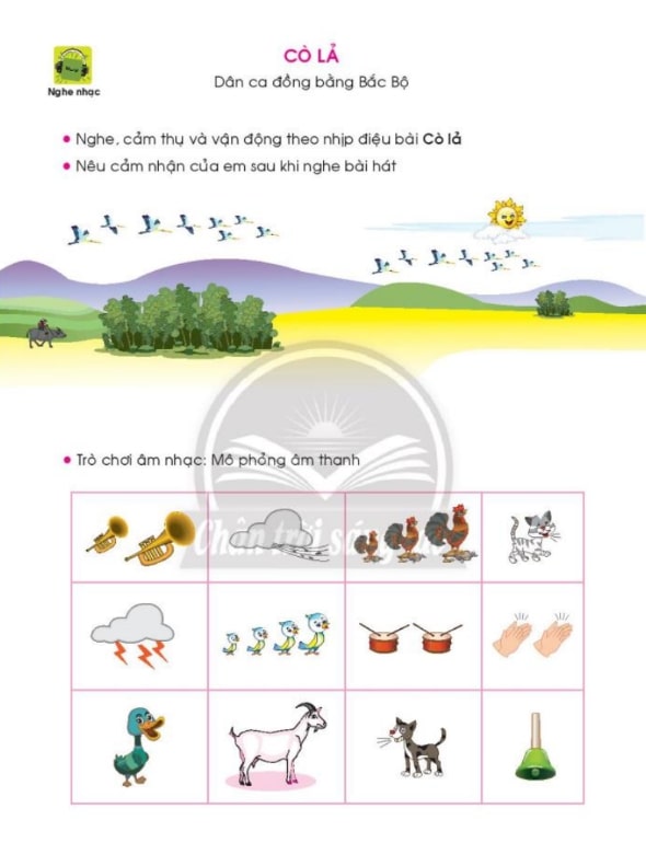 Nhận biết âm thanh xung quanh: Học sinh học cách phân biệt âm thanh cao – thấp, dài – ngắn, và nhận diện các nhạc cụ đơn giản.