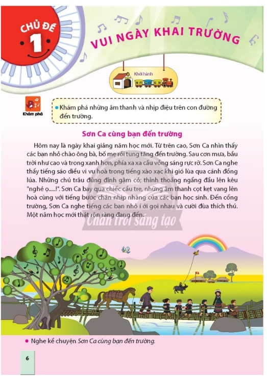 Chủ đề 1 đóng vai trò như bước khởi động giúp học sinh lấy lại nhịp học tập sau thời gian nghỉ. Nội dung được thiết kế nhẹ nhàng, dễ tiếp cận nhưng vẫn đảm bảo giúp học sinh làm quen lại với những yếu tố âm nhạc cơ bản.