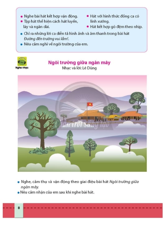 Mỗi bài học mang màu sắc riêng, được kết nối khéo léo với thực tế đời sống để khơi gợi sự hứng thú và nuôi dưỡng tình yêu âm nhạc. Không chỉ học hát, các em còn được mở rộng hiểu biết về nhạc cụ, phong cách âm nhạc và cách cảm nhận cái đẹp trong từng giai điệu. Đây là tài liệu học tập thiết thực giúp học sinh phát triển thẩm mỹ, tăng khả năng sáng tạo và nuôi dưỡng cảm xúc tích cực thông qua âm nhạc.