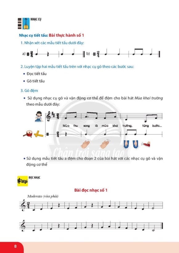 Thực hành bài tập: Nghe, hát, chơi nhạc cụ theo hướng dẫn trong sách giúp học sinh vận dụng kiến thức ngay.