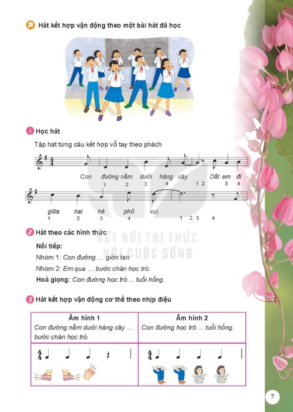 Bên cạnh đó, Âm Nhạc 6 Kết Nối Tri Thức chú trọng xây dựng trải nghiệm học tập sinh động qua các hình ảnh minh họa trực quan, hoạt động nhóm, trò chơi âm nhạc và các tình huống thực hành thú vị, khơi dậy niềm yêu thích âm nhạc và khả năng tự biểu đạt cảm xúc. Hệ thống bài tập và gợi ý hoạt động trải nghiệm giúp các em hình thành nền tảng thẩm mỹ vững chắc, rèn luyện khả năng cảm thụ, sáng tác và thể hiện âm nhạc.