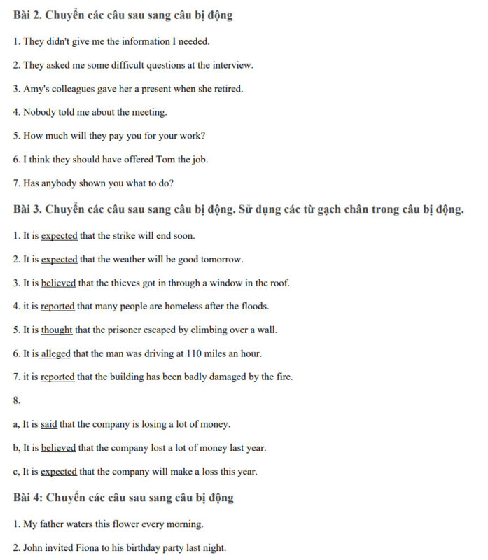 Bài tập câu bị động tổng hợp theo nhiều thì và cấu trúc