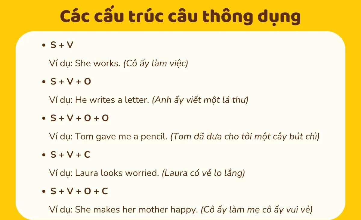 Các thì cơ bản: Present Simple, Present Continuous, Past Simple, Past Continuous, Present Perfect, Future Simple,…