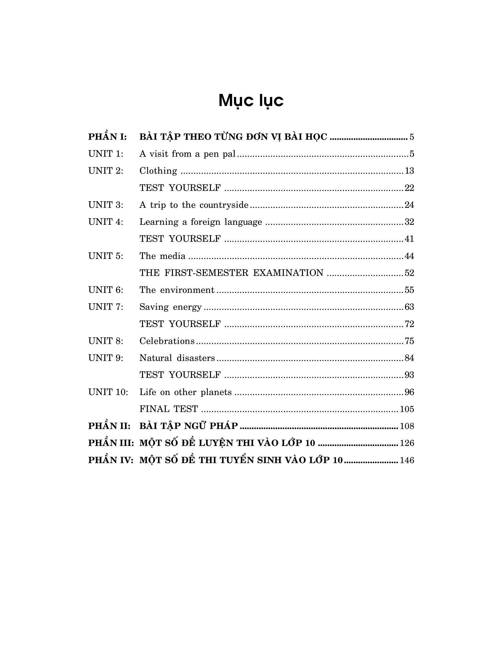 Tổng kết lại, Bài Tập Tiếng Anh 9 là tài liệu luyện tập toàn diện, mang đến cho học sinh lớp 9 công cụ hữu ích để vừa củng cố kiến thức, vừa rèn luyện kỹ năng thực hành. Đây chắc chắn là một cuốn sách đáng có trong tủ tài liệu học tập, đặc biệt cho những em chuẩn bị bước vào kỳ thi tuyển sinh lớp 10.