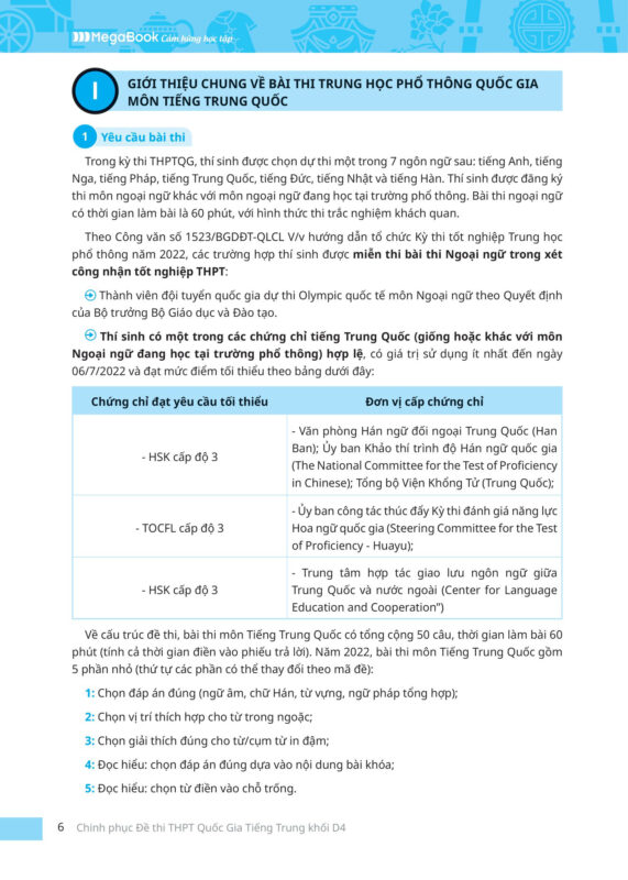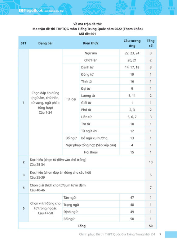 Cấu trúc nội dung thường gặp trong đề thi tiếng Trung khối D4