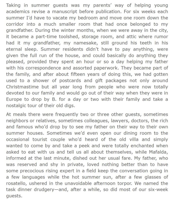 Mùa hè trong tác phẩm không chỉ là bối cảnh mà gần như trở thành một nhân vật thầm lặng, bao trùm toàn bộ cảm xúc của câu chuyện. Ánh nắng vàng, khu vườn yên tĩnh, những buổi chiều dài và nhịp sống chậm rãi của miền quê nước Ý tạo nên cảm giác vừa ấm áp vừa hoài niệm.