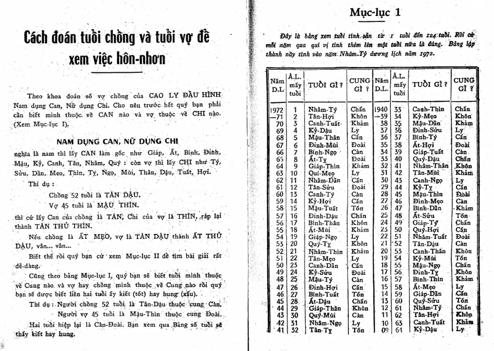 Để xem Cao Ly Đầu Hình tuổi vợ chồng tốt xấu, bạn cần xác định năm sinh âm lịch của hai người, tra cứu Thiên Can của nam và Địa Chi của nữ, sau đó dựa vào bảng kết hợp để biết cảnh hợp hay xung. Ví dụ, nam sinh năm Canh Thân, nữ sinh năm Giáp Tý, kết hợp này sẽ cho biết mối quan hệ thuộc cảnh nào, mức độ hòa hợp ra sao. Đây là cơ sở để dự đoán thuận lợi, khó khăn trong hôn nhân.