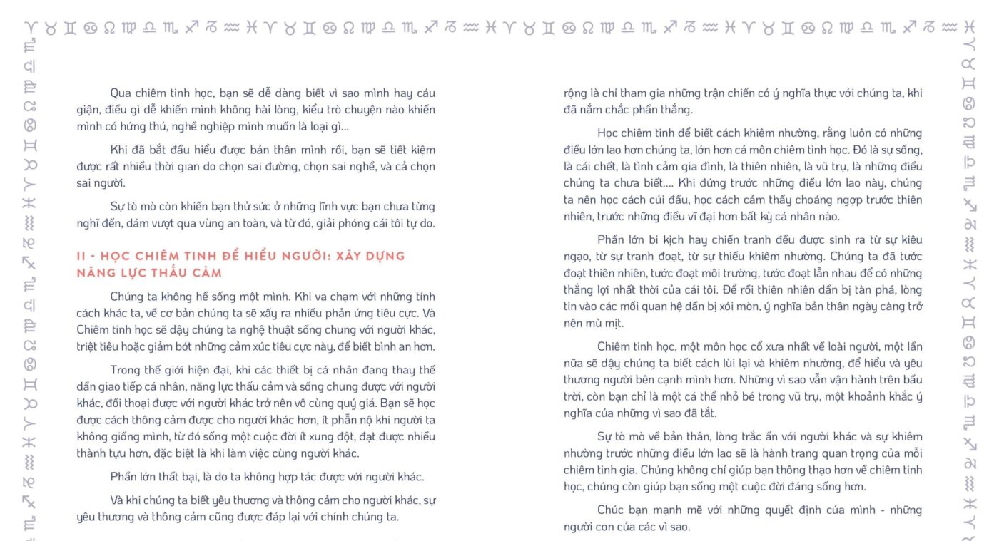 Một cuốn sách chiêm tinh học cơ bản chất lượng thường tập trung vào ba trụ cột chính: cung hoàng đạo, hành tinh và hệ thống nhà.