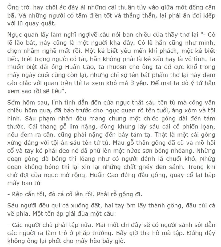 Ngôn ngữ giàu tính tạo hình khiến từng chi tiết đều mang vẻ đẹp thẩm mỹ riêng. Khi tìm hiểu chữ người tử tù full, người đọc dễ nhận ra sự công phu trong từng câu chữ. Thủ pháp tương phản giữa cao quý và thấp hèn, ánh sáng và bóng tối được sử dụng nhất quán. Nhờ đó, tư tưởng truyện hiện lên rõ ràng mà vẫn giàu chất nghệ thuật.