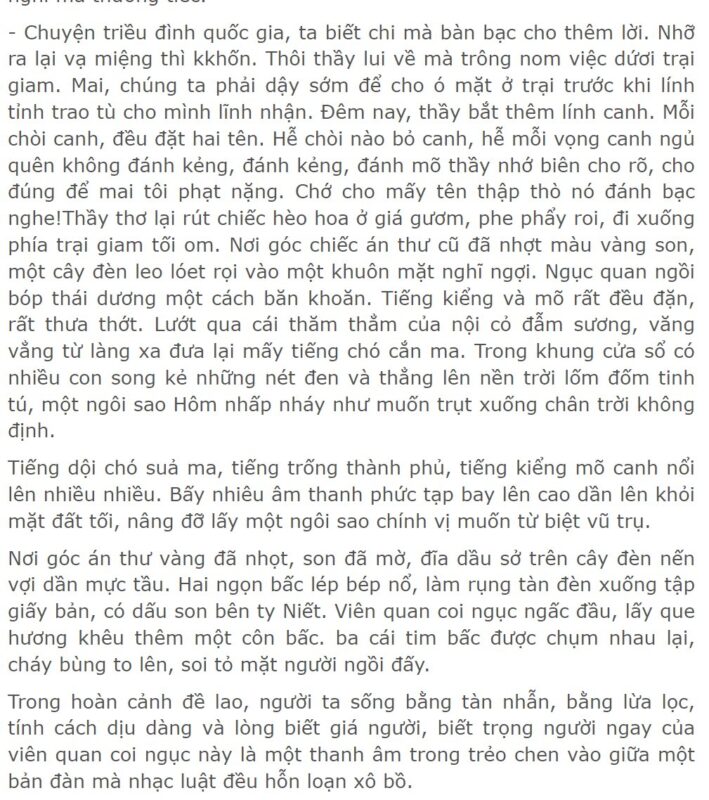 Chính vì vậy, dù tiếp cận qua chữ người tử tù sgk hay tìm đọc chữ người tử tù full, độc giả vẫn luôn bị cuốn hút bởi bầu không khí trang nghiêm, giàu tính biểu tượng. Tác phẩm giống như một bức tranh ánh sáng được vẽ lên từ bóng tối của ngục tù, nơi con người vẫn giữ được phẩm giá cao quý. Giá trị ấy khiến truyện ngắn trở thành dấu ấn bền vững trong văn học Việt Nam hiện đại.