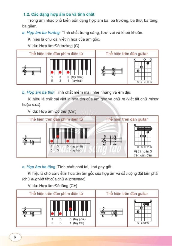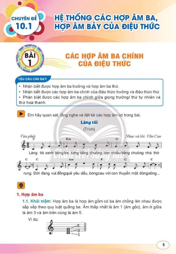 Sau khi học cơ bản, chuyên đề hướng dẫn học sinh tìm hiểu các thang âm trưởng – thứ, hợp âm cơ bản và cách phối hợp các nhạc cụ. Các kiến thức về nhạc lý nâng cao được trình bày trực quan, kết hợp ví dụ minh họa từ các bài hát phổ biến trong sách Âm nhạc 10 Chân Trời Sáng Tạo.