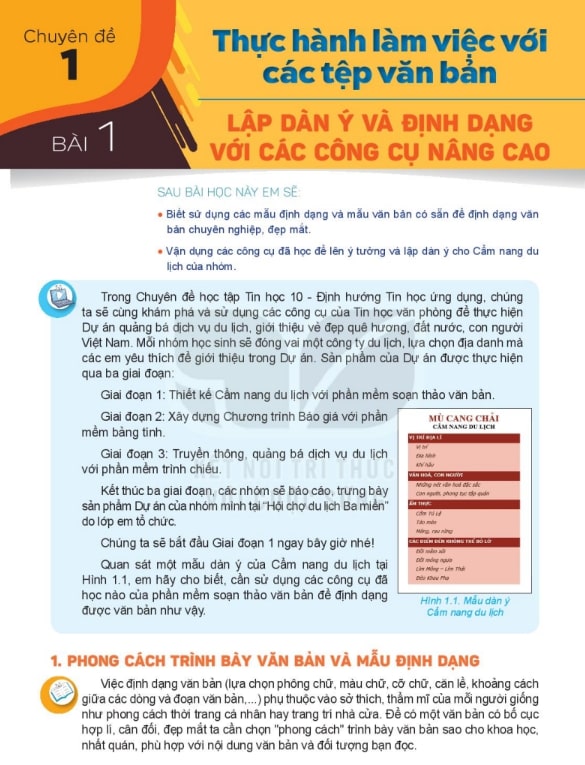 1. Nội dung chính trong Chuyên Đề Tin Học Ứng Dụng 10