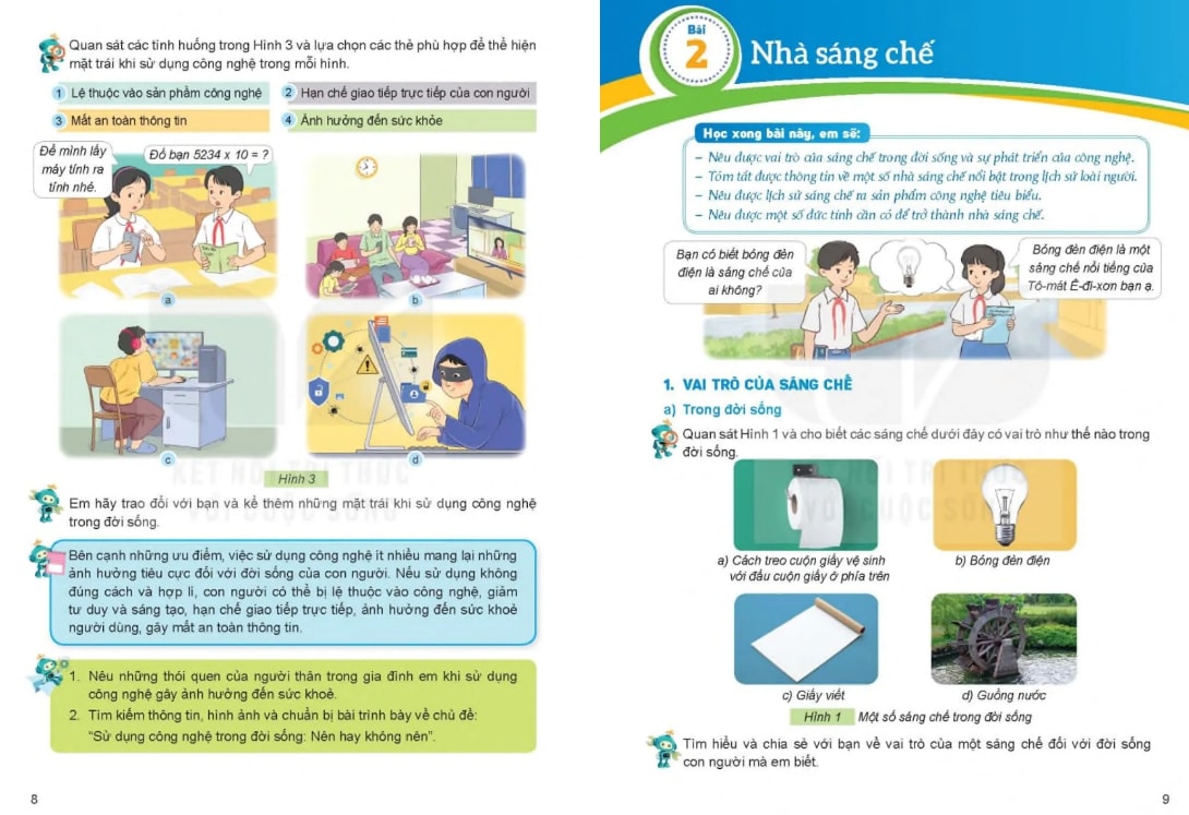 Qua từng bài học, học sinh sẽ làm quen với các ứng dụng công nghệ trong đời sống hàng ngày, từ máy móc đơn giản đến các sản phẩm công nghệ hiện đại. Sách được trình bày sinh động, dễ hiểu, đi kèm hình minh họa bắt mắt, giúp các em vừa học vừa thực hành, tăng hứng thú và sự tự tin trong học tập. Đây là tài liệu lý tưởng để xây dựng nền tảng kiến thức công nghệ vững chắc và rèn luyện kỹ năng STEM từ sớm.