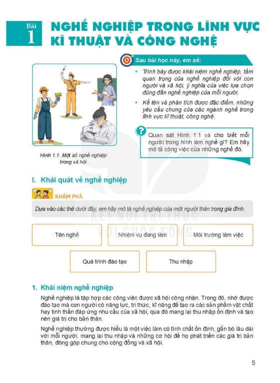 Sách Công Nghệ 9 Định Hướng Nghề Nghiệp Kết Nối Tri Thức được biên soạn theo từng bài học, giúp học sinh dễ dàng tiếp cận. Một số nội dung nổi bật bao gồm:
