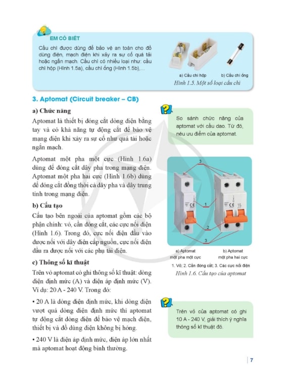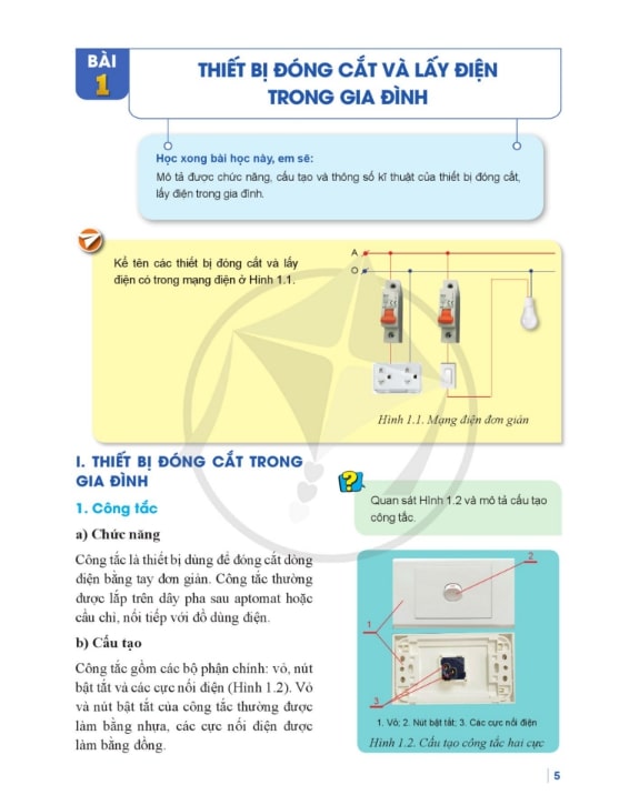Công tắc, ổ cắm, cầu dao, cầu chì.
