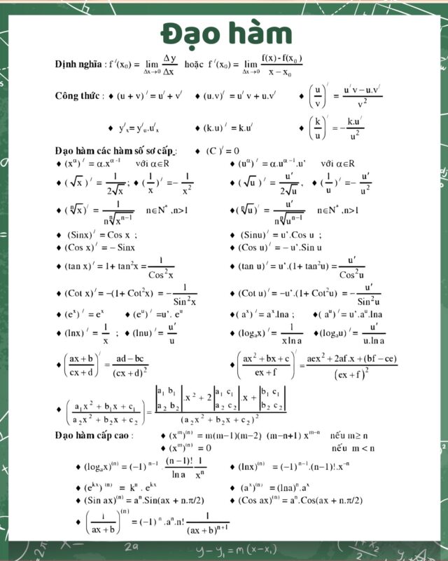 Không chỉ giúp học sinh củng cố kiến thức nền tảng, tài liệu còn hỗ trợ rèn luyện kỹ năng giải toán nhanh, chính xác và logic hơn. Nếu bạn đang tìm bảng công thức đạo hàm lớp 11 chuẩn, dễ hiểu và dễ học thuộc, đây chính là tài liệu không thể thiếu để đạt điểm cao trong các bài kiểm tra và kỳ thi quan trọng.