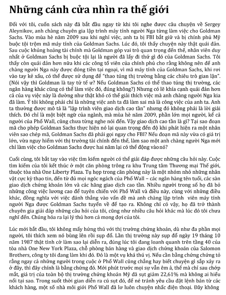 Đầu tiên, cuốn sách giáo dục về thị trường chứng khoán. Nó giải thích những khái niệm phức tạp như giao dịch cao tần, thuật toán, và cơ chế khớp lệnh theo cách dễ hiểu, giúp người đọc từ sinh viên tài chính đến nhà đầu tư chuyên nghiệp đều nắm bắt được.
