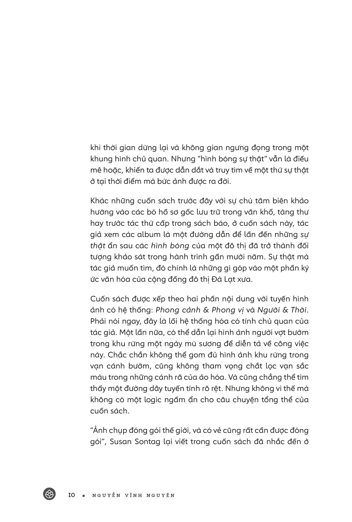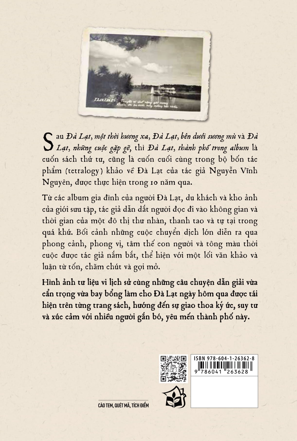 Với cách nhìn “album” độc đáo, Nguyễn Vĩnh Nguyên biến mỗi hình ảnh thành một câu chuyện sống động, từ cảnh sắc núi rừng, con người bình dị đến những dấu ấn lịch sử và văn hóa đặc trưng. Đà Lạt trong cuốn sách không chỉ là nơi lưu giữ dĩ vãng, mà còn phản chiếu tâm hồn, ký ức của những ai yêu mến thành phố sương mù này.