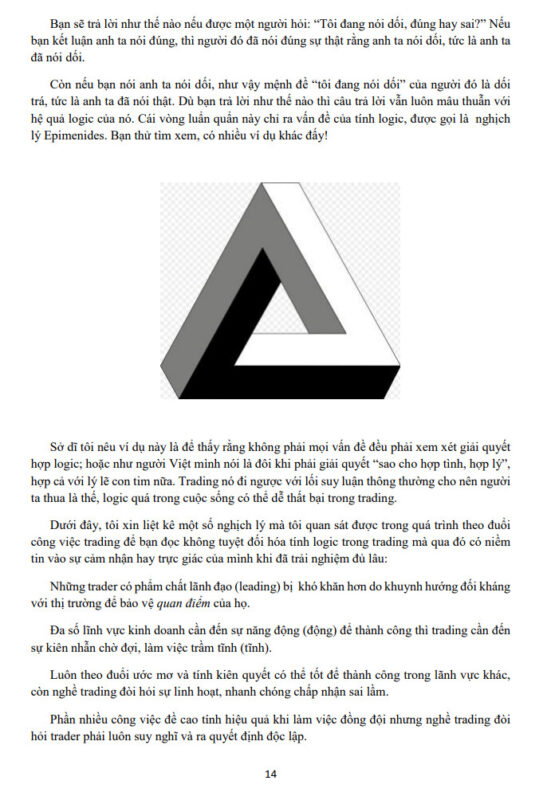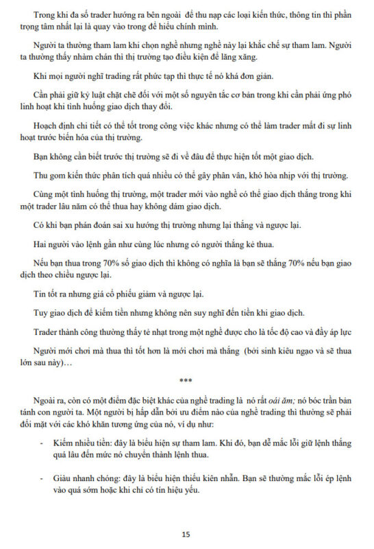 Không phải ai cũng phù hợp với tinh thần của Đạo Trading. Những ai tìm kiếm công thức làm giàu nhanh, chiến lược đánh đâu thắng đó có thể sẽ thất vọng. Cuốn sách này đòi hỏi sự kiên nhẫn, khả năng tự soi chiếu và sẵn sàng thay đổi cách nhìn về trading lẫn chính bản thân mình.