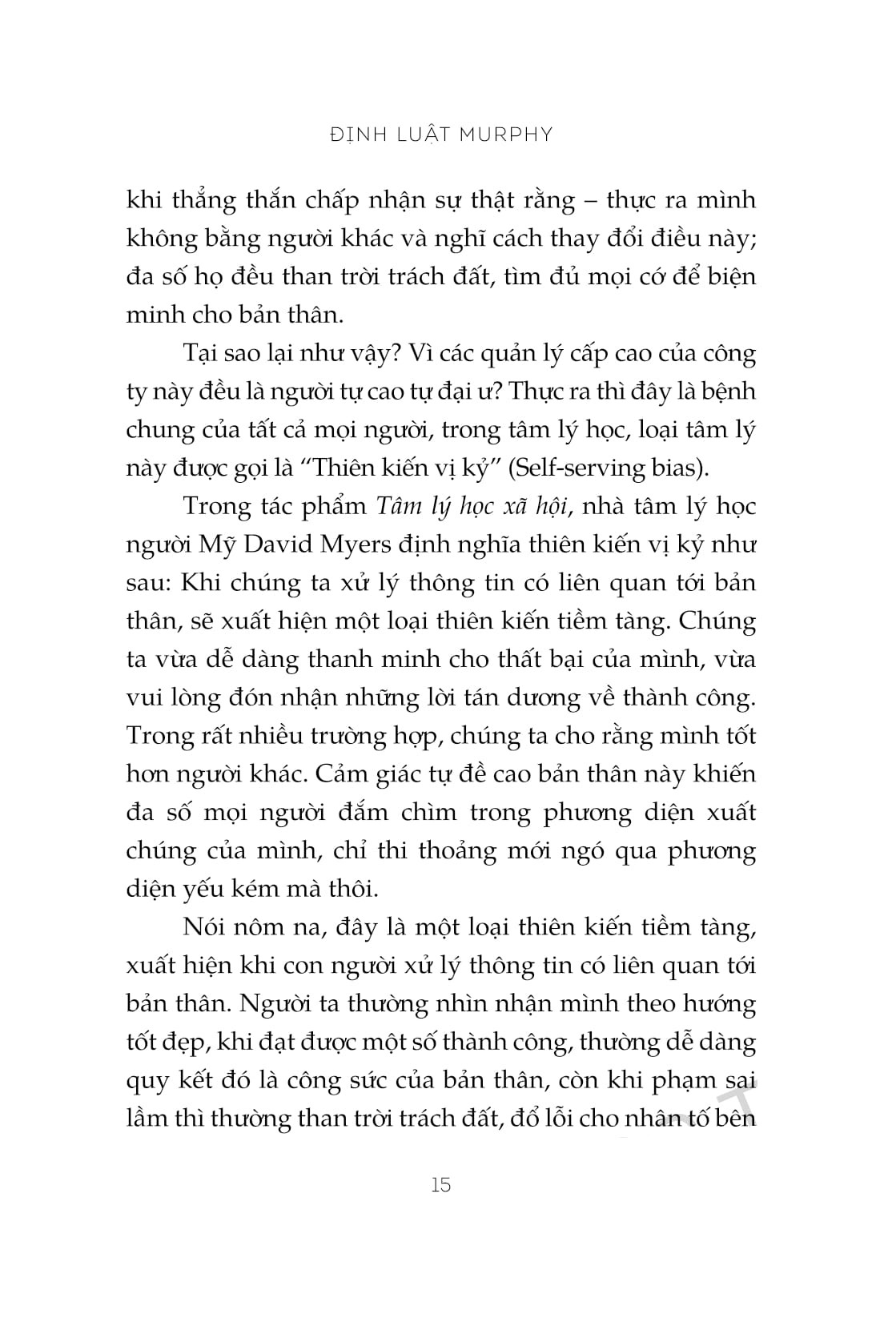 Trong mọi tình huống, khi sự cố xảy ra, khả năng mọi thứ diễn biến theo chiều hướng xấu luôn tồn tại — đó chính là tinh thần của Định Luật Murphy. Cuốn sách không chỉ giải thích luật này mà còn đưa ra các hiệu ứng tâm lý và nguyên tắc quản lý rủi ro, giúp bạn nhìn nhận sâu sắc về con người, xã hội và những quyết định trong cuộc sống. Đây là nguồn tài liệu hữu ích để nâng cao tư duy, cải thiện phương pháp giải quyết vấn đề, và tăng hiệu quả trong công việc cũng như đời sống cá nhân.