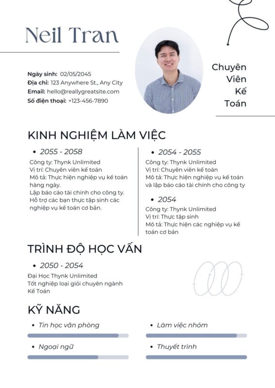Giữ nguyên bố cục chuẩn, chỉ thay đổi nội dung cá nhân.