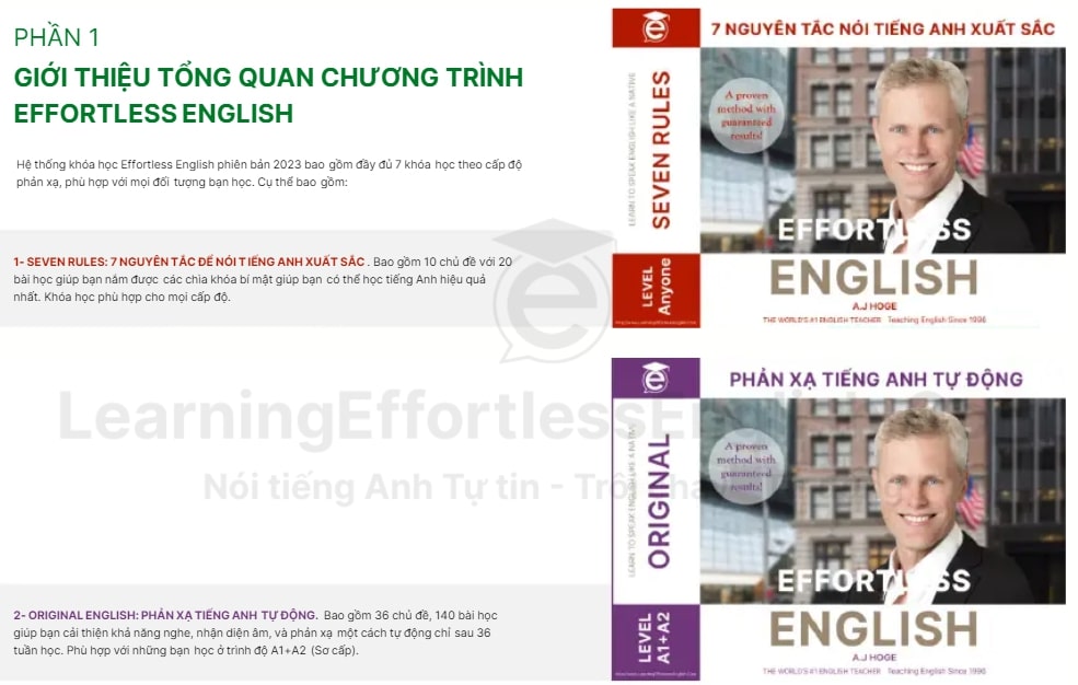 Tài liệu Effortless English kết hợp nghe, nói, đọc, và phản xạ – giúp bạn cải thiện toàn diện chỉ trong vài tháng. -