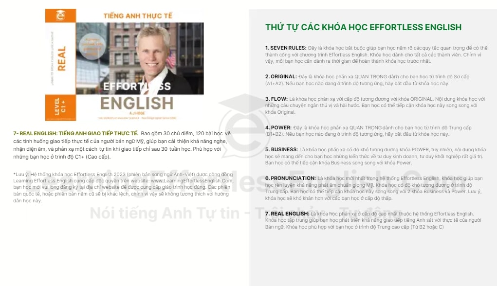 Nếu bạn đang tìm phương pháp học tiếng Anh giao tiếp hiệu quả nhất, không còn sợ nói sai, nói chậm, thì Effortless English chính là lựa chọn lý tưởng. Bộ sách không chỉ giúp bạn “học mà như chơi” mà còn mang lại nền tảng vững chắc để nói tiếng Anh trôi chảy như người bản xứ.
