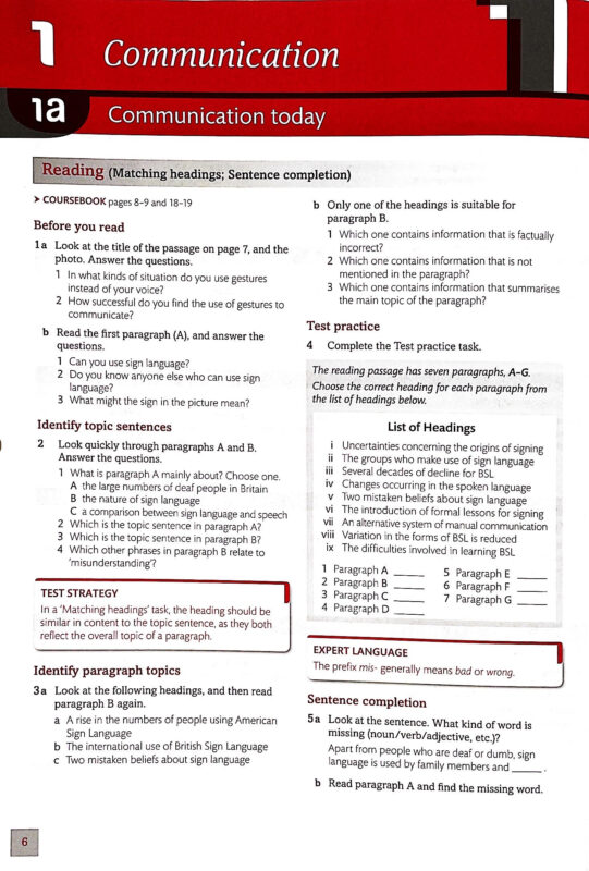 Mối liên hệ giữa answer key và cấu trúc sách Expert IELTS 6