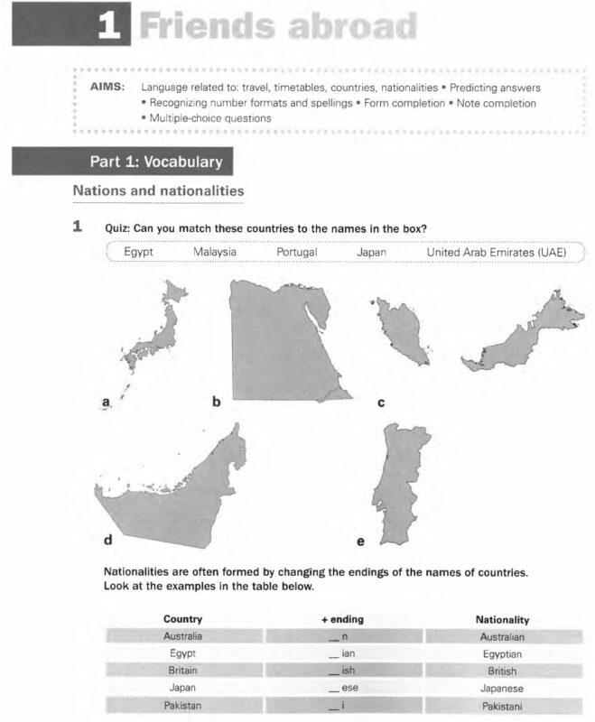 Exam Practice: Phần luyện tập chuyên sâu với các dạng câu hỏi: form completion, multiple choice, map labeling, sentence completion, short answer questions,…