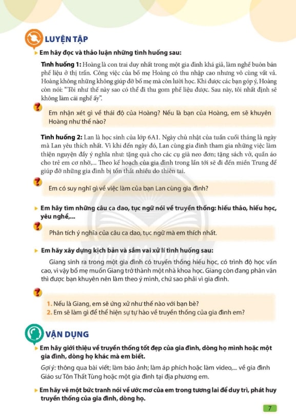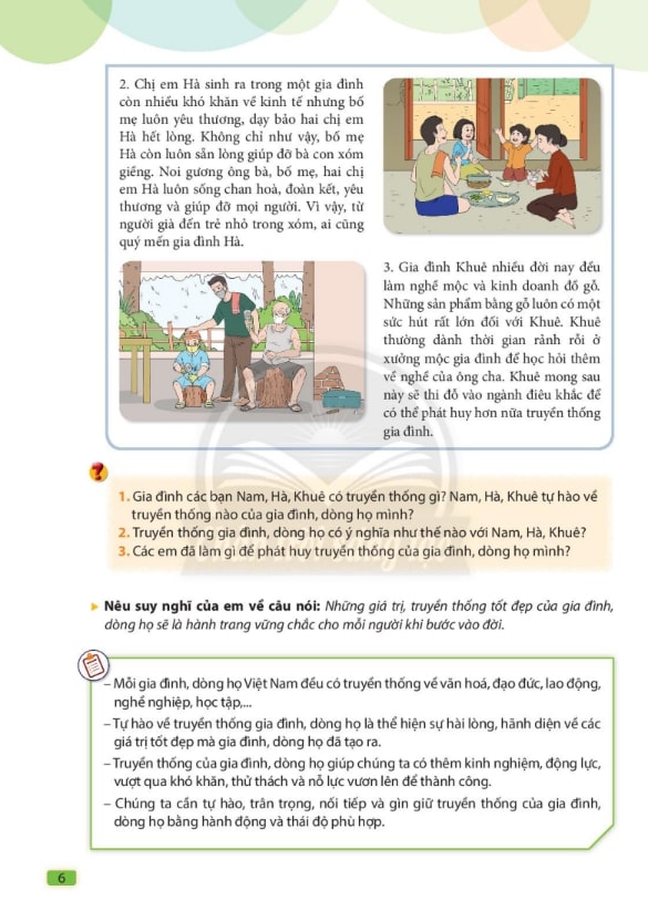 Một điểm đặc sắc của Giáo dục công dân 6 Chân Trời Sáng Tạo pdf là các hoạt động trải nghiệm giúp học sinh kết nối kiến thức với thực tế. Qua trò chơi, thảo luận, đóng vai và mô phỏng tình huống, các em học cách đưa ra quyết định, đối mặt với vấn đề, và hiểu rõ mối quan hệ giữa quyền lợi, nghĩa vụ và trách nhiệm xã hội. Hoạt động này không chỉ giúp bài học trở nên sinh động mà còn định hướng các em trong lựa chọn nghề nghiệp tương lai, phát triển kỹ năng mềm cần thiết khi trưởng thành.