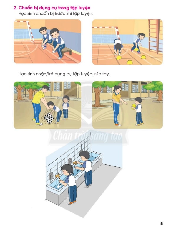 Mỗi bài học được thể hiện bằng hình ảnh minh họa sinh động, hướng dẫn rõ ràng, giúp các em dễ dàng tiếp thu và chủ động tham gia vào từng hoạt động. Không chỉ chú trọng phát triển thể lực, sách còn hướng đến việc nuôi dưỡng sự tự tin, tính kỷ luật và khả năng hợp tác giữa các bạn nhỏ.
