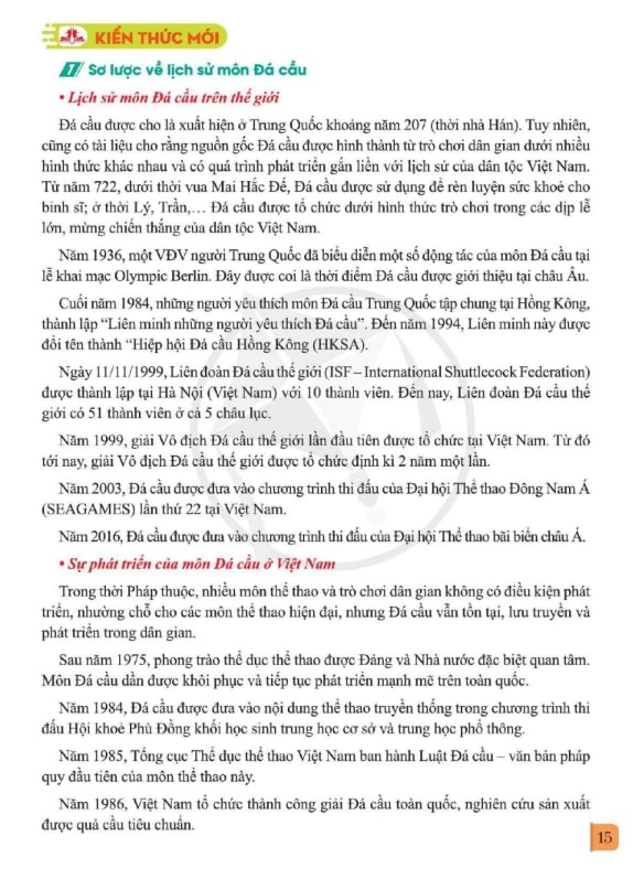 Kiến thức lý thuyết: Giới thiệu nguồn gốc, lợi ích sức khỏe và tác dụng phát triển thể lực của đá cầu. Học sinh được tìm hiểu về kỹ thuật đá cầu, các quy tắc thi đấu và luật chơi cơ bản.
