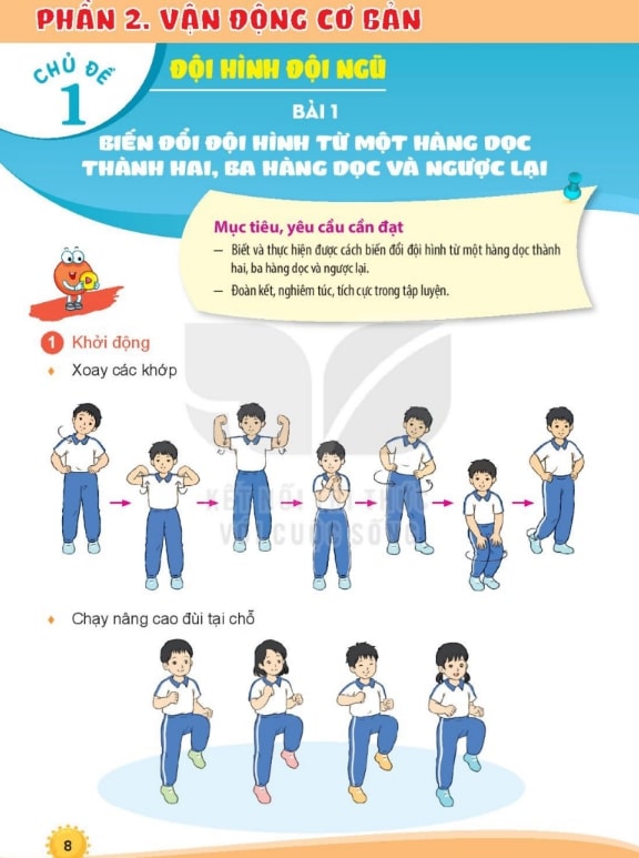 Khởi động: Các hoạt động nhẹ nhàng giúp học sinh làm quen với bài tập, tăng sự tập trung và khởi động các nhóm cơ cần thiết.