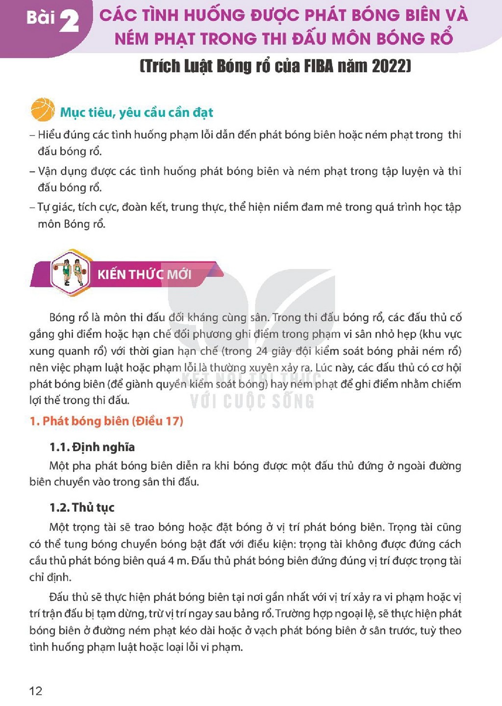2. Nội dung chính sách học trong sách Giáo dục thể chất Bóng rổ 11