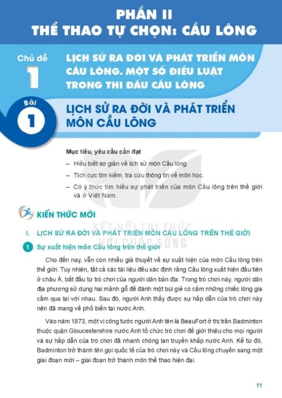 Đây cũng là nội dung phụ huynh – học sinh thường tìm kiếm qua các từ khóa như Cầu lông 11 Kết nối tri thức, Nội dung SGK Giáo dục thể chất 11,…