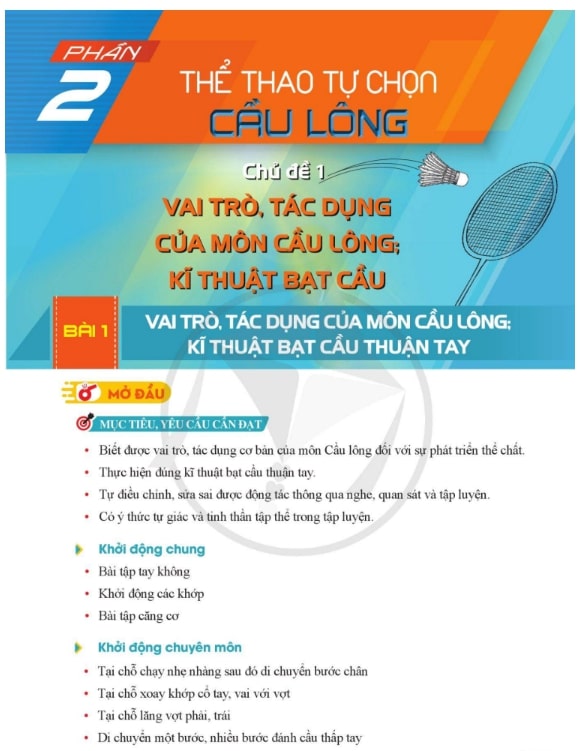Nội dung chính của sách Cầu Lông 11 Cánh Diều