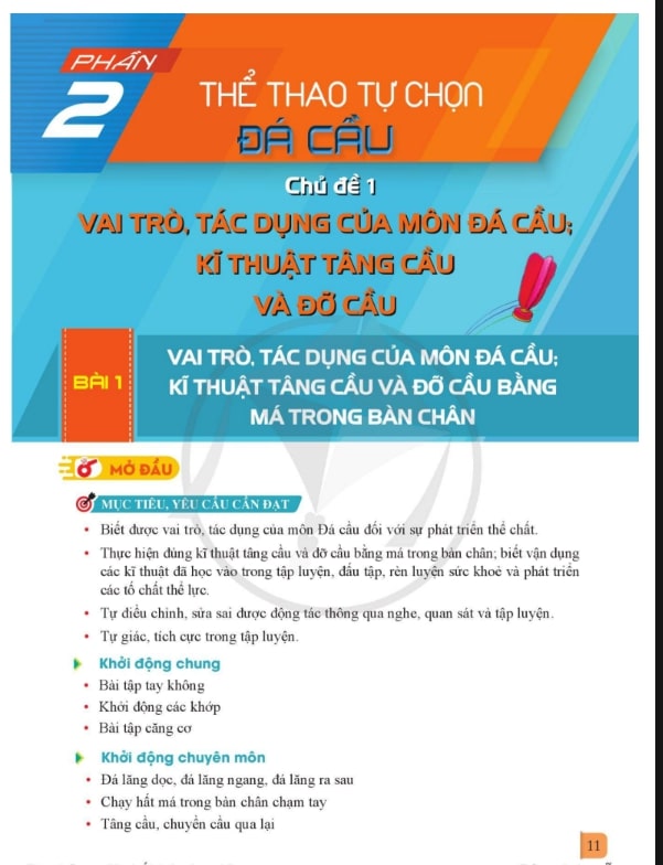 Đây cũng là nguồn tài liệu tham khảo hữu ích cho giáo viên, các huấn luyện viên và những ai đam mê đá cầu, đồng thời hỗ trợ hiệu quả trong ôn luyện kỹ năng, chuẩn bị thi đấu và nâng cao thể lực. Với Giáo Dục Thể Chất Đá Cầu 11 Cánh Diều, mỗi buổi học trở nên thú vị, bổ ích và đầy hứng khởi, mở ra cơ hội rèn luyện toàn diện cả về thể chất lẫn tinh thần cho học sinh.
