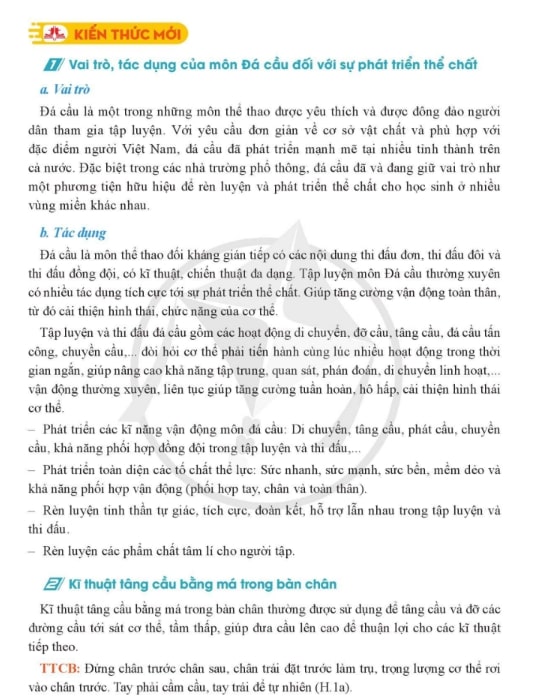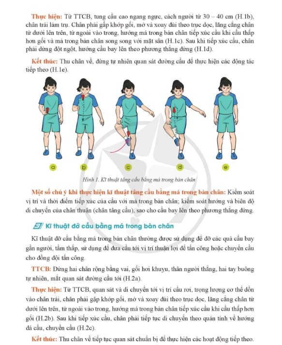 Đá cầu bằng lòng bàn chân giúp kiểm soát lực cầu, thích hợp cho các đường chuyền ngắn. Học sinh cần giữ thăng bằng tốt, hông và đầu gối linh hoạt để tăng hiệu quả luyện tập. Đây là kỹ thuật cơ bản nhưng quan trọng để nâng cao khả năng phối hợp và phản xạ nhanh.