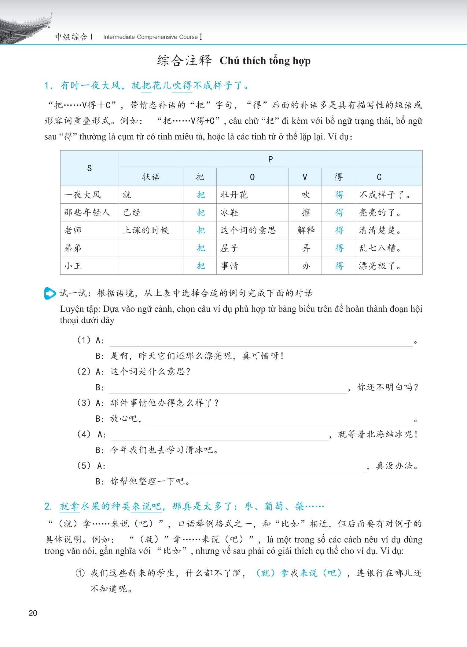Tóm Tắt Sách Giáo Trình Phát Triển Hán Ngữ Trung Cấp 1
