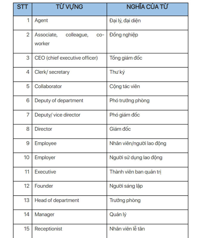 Việc học từ vựng theo chủ đề giúp ghi nhớ lâu hơn và sử dụng đúng hoàn cảnh. Bên cạnh đó, các ví dụ minh họa và bài tập ứng dụng giúp người học hiểu rõ cách dùng từ, tránh nhầm lẫn giữa tiếng Anh giao tiếp thông thường và tiếng Anh thương mại chuyên sâu.