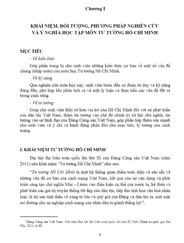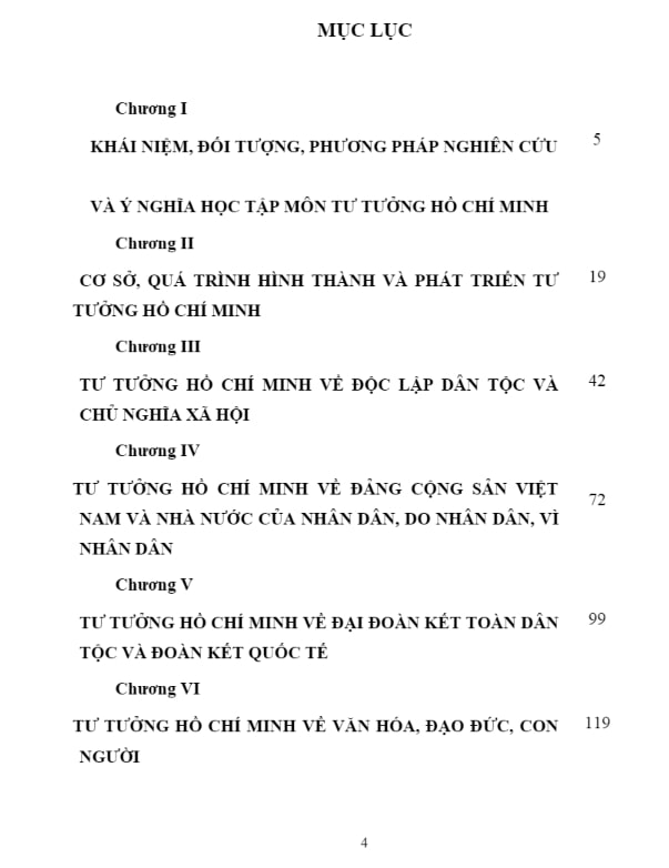 Giáo trình được chia thành nhiều chương, mỗi chương phân tích các khía cạnh khác nhau của tư tưởng Hồ Chí Minh, giúp sinh viên hiểu sâu sắc về các nguyên lý, giá trị và ứng dụng thực tiễn.